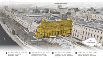 Thieves in balaclavas broke into Paris’ Louvre, the world’s most-visited museum, and stole priceless objects